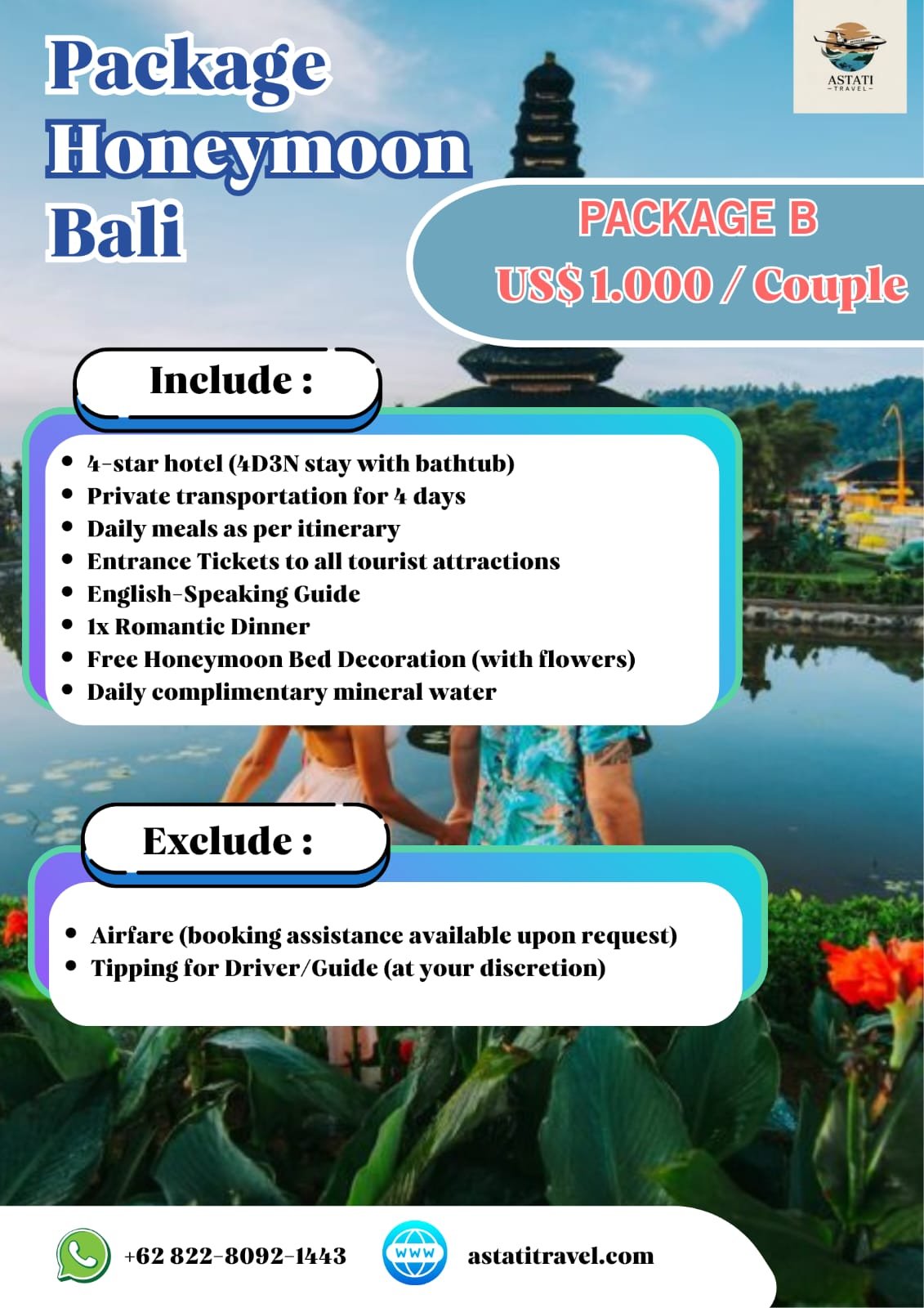 - Free Honeymoon Bed Decoration (with flowers)